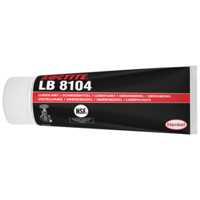 Kirkas, silikonipohjainen voiteluaine elintarviketeollisuuden laitteisiin. LOCTITE LB 8104 on väritön ja hajuton silikoniöljypohjainen rasva, jossa on epäorgaanista sakeuttamisainetta elintarviketeollisuuden laitteisiin.